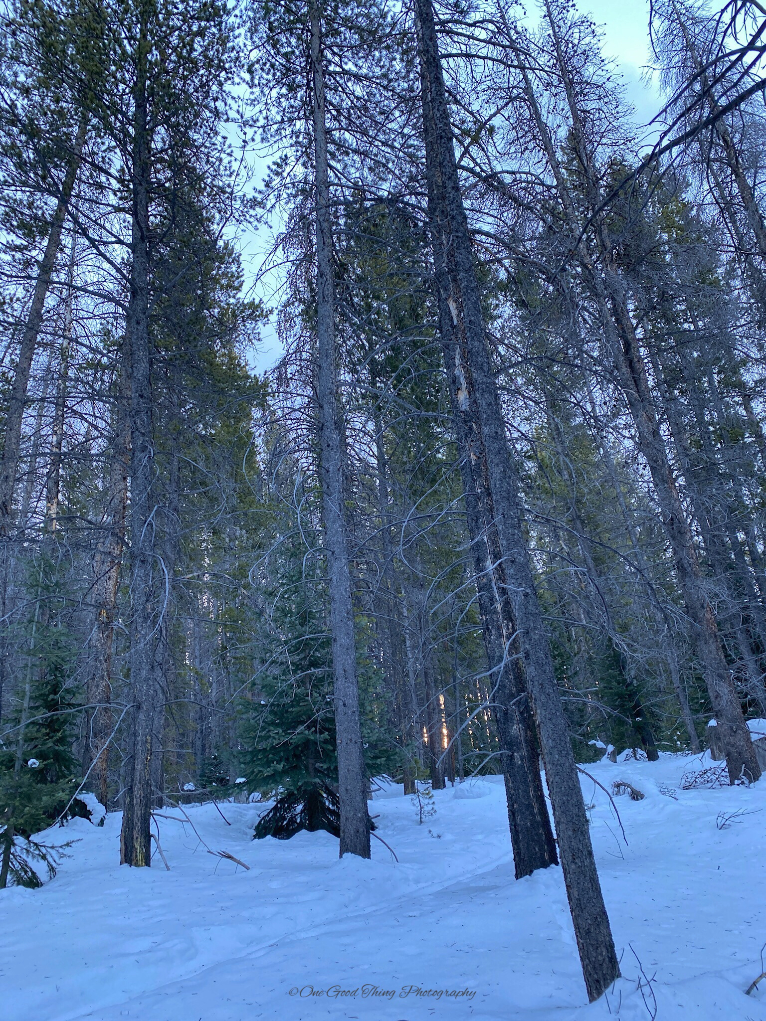 The beauty of the snowy forest as I view it both upright and from the ground is my good thing today!